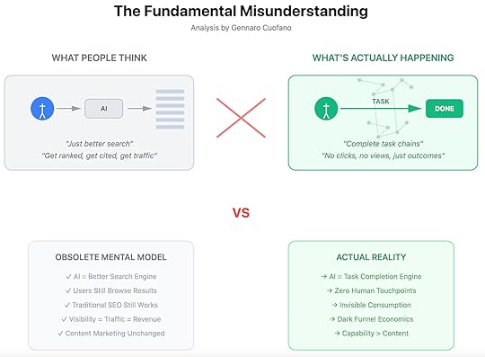 When agents can extract your value and deliver it elsewhere, when they can synthesize your unique insights with dozens of other sources, when they can utilize your services without ever showing your brand – what exactly are you optimizing for?