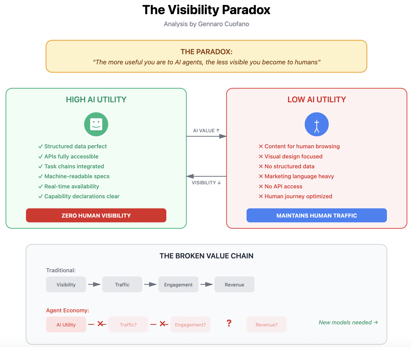 The paradox is this: The more useful you are to AI agents, the less visible you might become to humans.