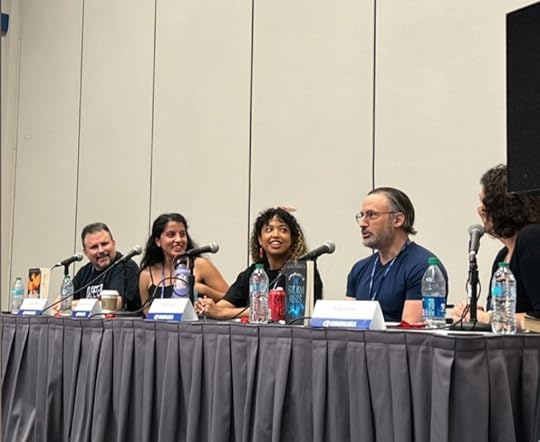 Me, Aparna Verma, Gabriela Romero Lacruz, Jim Butcher, and Rose Garcia. (What am I doing here with these big names??)
