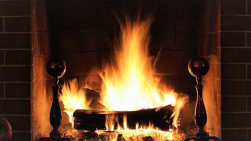 You're in a room with a roaring fire. Wisps of orange mix with yellow and red in the flames as they leap high under the rough, brick mantle. You can smell bits of smoke mixed with the faintest hints of cedar wood.