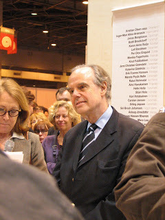 Franski mentamálaráðharrin Frédéric Mitterrand skuldi koma og seta stevnuna kl. hálvgun átta, og eisini vitja í norðurlendska básinum, men fólk bíðjaðu og bíðjaðu, fingu sær pinnamatar og vín og juice, men ongin mentamálaráðharri kom.