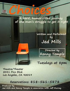 818-561-5878 will take you to an answering service where you can reserve seats for Choices at 8pm on Tuesday, July 12th, 19th, or 26th. And if you whisper "I'm a friend of the theater" at the box office, tickets are only $10! Parking is available on the street north and south of Pico for FREE. The theater is just 2 and 1/2 blocks West of La Brea.