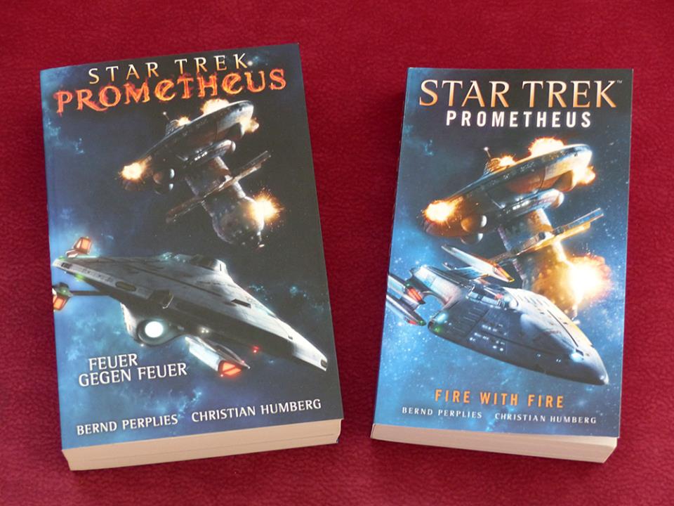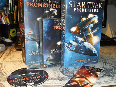 "Star Trek Prometheus" hat einen kleinen Bruder bekommen! Es mag nur ein unscheinbares Taschenbuch sein, aber es ist ein verdammt großer Schritt für mich als Autor. Erstmals können Leser auf der halben Welt Worte lesen, die ich geschrieben habe - okay, genau genommen Übersetzerin Helga Parmiter und Lektor Keith DeCandido. Ich bin jedenfalls ziemlich hin und weg. (Das Buch ist übrigens ein Vorab-Beleg. Überall erhältlich ist "Fire with Fire" dann Ende November.)