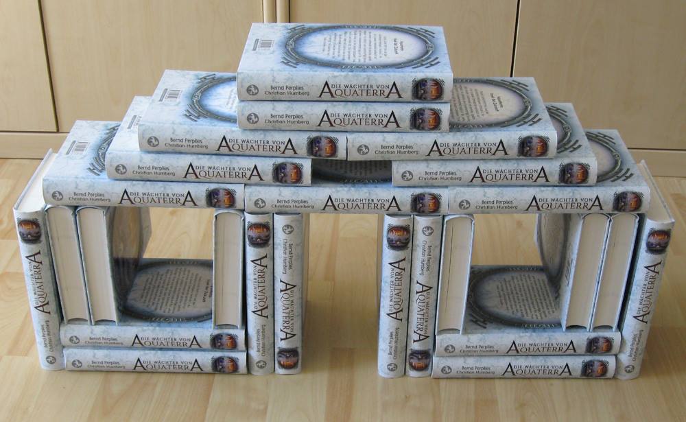 Der Paketbote fragt, ob ich Backsteine bestellt hätte. Ich so: Nein, sind nur Bücher. Aber ich verstehe, was er meint, als ich das Paket ins Haus trage. (Oder: Hurra! Die Belege von "Die Wächter von Aquaterra" sind eingetroffen.)