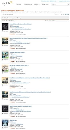 "Game of Thrones", "Harry Potter", "American Gods" und ... "Tarean"? Ich muss im Laufe der letzten Nacht in eine Parallelwelt gezogen worden sein, wenn ich mir die aktuelle Hörbuch-Bestsellerliste bei Audible anschaue. Aber natürlich freue ich mich.