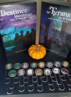 Liste de prix :- 1 livre pour : 20 $ - 2 livres pour : 35 $ - 3 livres pour : 45 $ - 4 livres pour : 55 $- Marque-pages, aimant, porte-clefs : 5 $- Bijoux faits à la main (bracelets cuir, colliers) de 5 $ à 25 $
