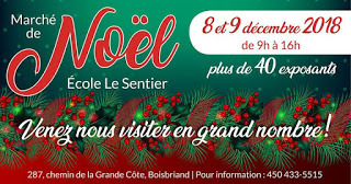 Au : 287, chemin de la Grande-Côte, Boisbriand QC J7G 2L2 Quand : le samedi 8 et dimanche 9 décembre 2018 de 9 h à 16 h.