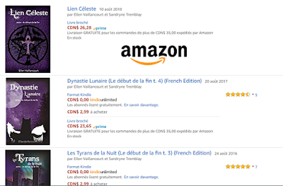 Pour le Canada c'est ici : https://www.amazon.ca/Lien-C%C3%A9leste-Ellen-Vaillancourt/dp/1721166904/ref=sr_1_1?s=books&ie=UTF8&qid=1534336977&sr=1-1&keywords=Ellen+Vaillancourt&dpID=51bhmdhq8tL&preST=_SY344_BO1,204,203,200_QL70_&dpSrc=srch