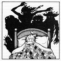 The book is presented as a mini-encyclopedia, with entries alphabetized and cross-referenced. It's intended for browsing, though—no table of contents and no index. Yvonne Gilbert's illustrations are funny, lovely, or harrowing, depending on need. If I'd read this as a child I would have flipped quickly past the color plate of the Nuckelavee, a centaur-like Orkney sea-monster that is the stuff of nightmare.