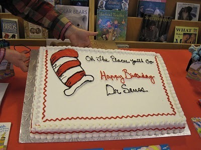 March 2 is Dr. Seuss's birthday, in case you didn't know, and the National Education Association chose it years ago as the date for Read Across America, when community members visit schools to read aloud. In Brooklin, as in many other schools, it's also Pajama Day. (I sleep in a T-shirt--TMI alert--and don't own pajamas, so I contented myself with wearing a bathrobe over my clothes.)