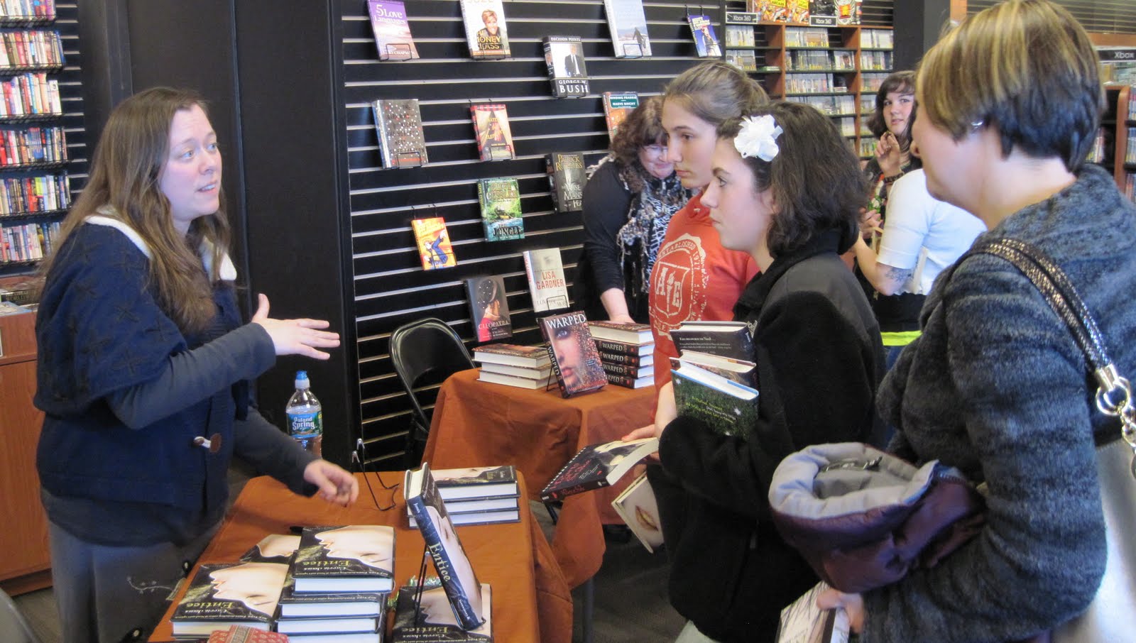 Here's Carrie (left) and Maurissa (in background, in black) in action on Saturday, after our reading at Bull Moose.