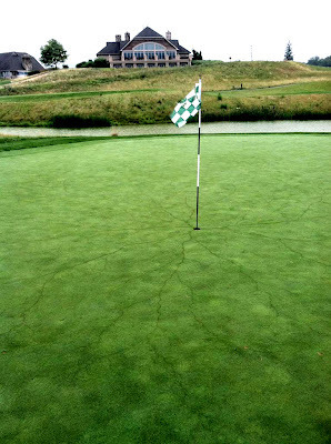 If you have any doubt about what happens when lightning strikes a golf course, look closely at the green in this picture from Ballyowen in Hamburg, NJ. The flag has been replaced since the one that drew the lighting was obliterated, but check out the cracks in the green radiating from the cup. Now imagine the force that created them coursing through your body. Not pleasant, but that's exactly what could happen if you ignore the simplest rule in golf: if there is the remotest possibility that lightning is in the area while you are on a golf course--take immediate shelter!