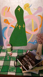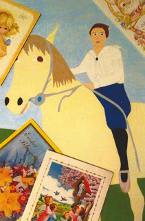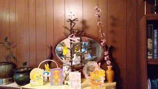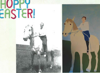 So is designing Easter cards using my paintings.This one was really fun as the painting (acrylic on canvas, 16X20) is based on an old black and white photograph of my grandmother circa 1920.