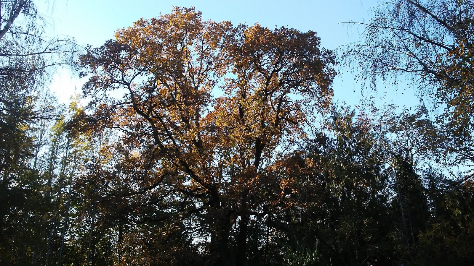 The oak stands out against the