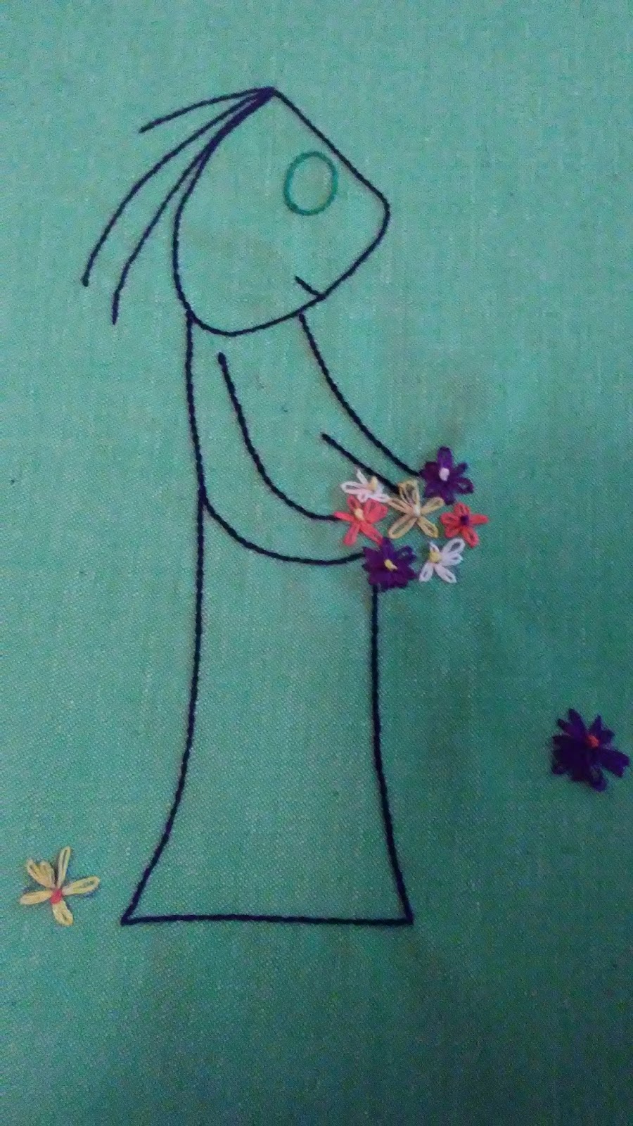 From a line drawing I made in the mid 1970s.I did the embroidery a year or so ago. Very "springy".