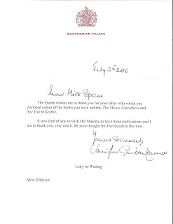 A while back I sent copies of my books, See You In Seattle and The Misses Carruthers to Her Majesty Queen Elizabeth the Second. I got a thank you letter back. Of course it is actually from one of her Ladies - In - Waiting, but how exciting.