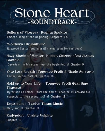 First off, below is the soundtrack for Stone Heart, in case you want to listen while you read! (Feel free to download the graphic) I even have a playlist on Youtube Music that you can save! (Click here to check it out)
