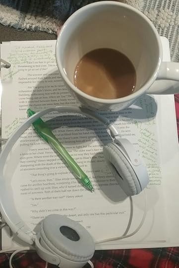 Coffee, music, and editing…all I need is a cat!I have news to make up for it, though… over break I finished the rough draft of Born in Darkness!!! It clocked in at over 92,000 words, my longest book yet, and I’m already working on adding more scenes to flesh out some bits. Goodness, guys…I love this book so much. Maybe that’s cheesy for me to say when I’m the one who wrote it, but it’s true! I think this is my favorite so far. I can’t wait to share it with you!