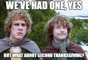 And yes, we’re all far from succeeding, but why should that stop us from trying and asking God for the strength to keep trying? And maybe the first step toward being thankful in all ways is to hold on to the focus of Thanksgiving even when everything is on sale. Maybe the first step is letting that one person push ahead of you, recognizing that they are a human being with their own life and story and you don’t truly need that one thing anyway. Maybe the first step is going without those few new things in order to understand the value of what’s already in your home…the value of family and laughter and time spent talking and playing and even just sitting next to each other. Maybe instead of Black Friday we should have Thanksgiving #2.