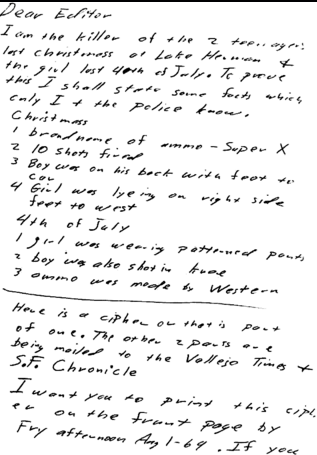 Zodiac also left a poem on a desktop inside the library. Check out Rader’s use of poetry in this letter he sent from jail.