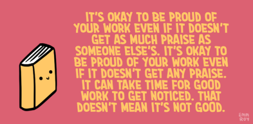 Book #2/Caption: It's ok to be proud of your work even if it doesn't get as much praise as someone else's & if it gets no praise. It can take time for good work to get noticed. It's still good work.