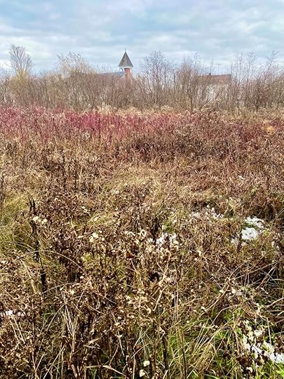 The season’s first snow layers in among the remains of frost-killed summer. The light now is late fall — unfiltered by leaves, without the warmth of summer, but clear, penetrating. One of the autumn’s beauties are lingering twilights, the slow unfolding of the day into night.