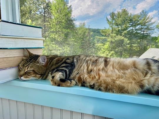 When my daughter appears, I pull off my leather gloves, and we sit on the steps, talking about the Trump verdict. A hummingbird darts between us, onyx and ruby. Later, I’m driving north in the narrow Black River valley to hear GennaRose Nethercott read in the gorgeous old East Craftsbury church. In the parking lot, I join a few friends, talking talking about the verdict, another of these moments with a historic tinge. Crows peck in the farm field behind the church freshly harrowed up. The end-of-May evening is rich with a mixture of cow manure and lilac. Vermont loveliness.