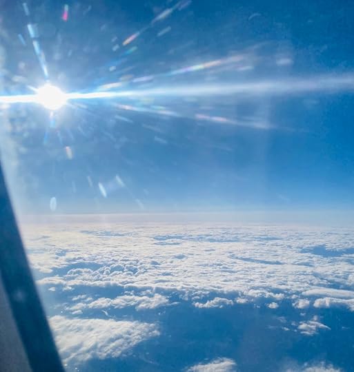 Later, descending into Burlington, Vermont, the plane cuts down through the brilliant clouds, the underbelly smoky gray, furled with nascent rain or snow. A crimson blush scrims over the mountains, the merest beginnings of tree buds. Dusk hovers. I think of my daughter waiting for me in the nearly empty airport, all grown up now, car keys in her hand. I’m hungry for whatever food she’s brought and, mostly, for the conversation on our drive home.
