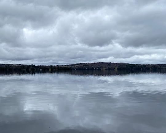In the evening, my daughter and I walk her dogs across the cemetery to the ballfields. Off leash, the three of them run while I stand in the field’s center, listening to the robins’ chatter in the white pines. Back at my house, we stand by the woodpile, talking about little things — who will take the leftover garlic bread, did the butterfly bush survive the winter. The rising moon illuminates the clouding-up horizon with a glowing shaft. We linger, watching the full moon sail confidently, unstoppably, over the horizon. Later, I linger on the back porch, sipping tea. The moon has removed the lid of shoebox Vermont. The air’s sweet with wet soil.