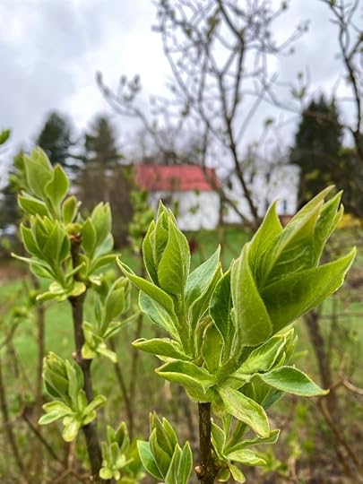 As the spring dusk settles down, I’m wandering around the edges of my garden. The lilacs have just begun opening, a tiny four-petaled blossom here, another there, the remainder of that lavender flower still knotted, not yet relaxed into the wide open spring season.