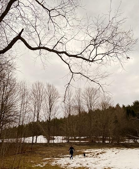 I meet a friend at a former golf course now owned by the city of Montpelier where people let their dogs run. The course is last year’s brown grass, but when I squint I can see emerging green beginning shimmer, pushing back the dull amber. How much the world leans into living.