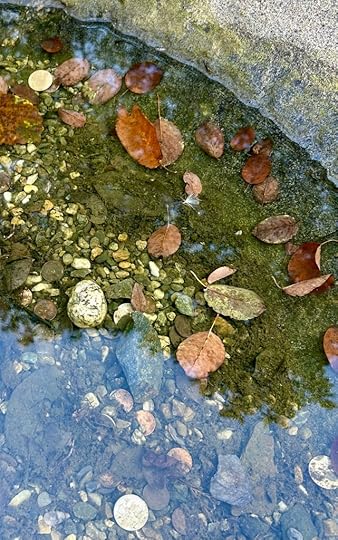 Slowly, the rain is returning, the streams beginning to flow again. Puddles muck the trails in a few low places. Meanwhile, people ask, “How’s your water holding up?” Word travels of dried up wells. This morning, I stand on my porch in the dark, listening to rainfall patter through the leaves that linger on the trees around my house. The crests of the apple trees hang onto their crowns of gold. We’re at that dipping point, the swing of seasons, the earth yet warm, redolent with this summer’s abundance.