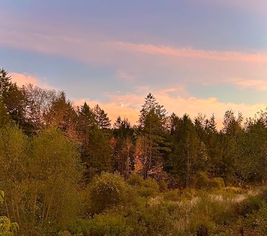 Mid-October, and the crickets are still singing. The elements for my survival include so many of you here, who sent me letters and cookies, books and cards; access to medical care (a great privilege); friends and colleagues and my dear family… and my own scrappiness, my fierce desire not to slip away from this world and this patch of acreage, the half-moon sailing silently over my frost-gnawed garden.