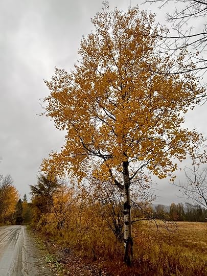 A woman stops me on the sidewalk and offers me a chair. I discover it’s a fine reading chair and bring it home, much to my cat’s delight. Friends track me the hermitess down in the coffee shop where I’ve spread the pieces of my manuscript over a table. We drink cappuccinos and eat jam bars and talk shop. I’m hurtling through the book I’ve called a cancer atlas — how to endure the intertwined suffering of cancer-and-chemo and then what? I tease, write the ending for me, will you? although I’m already there, stitching together mosquito bites and spring ephemerals and sleeping alone in a cold tent while the rain soaks through the tent fly and floor. We share kale soup recipes and marvel at this long dry autumn, the poplars yet holding their gold leaves.