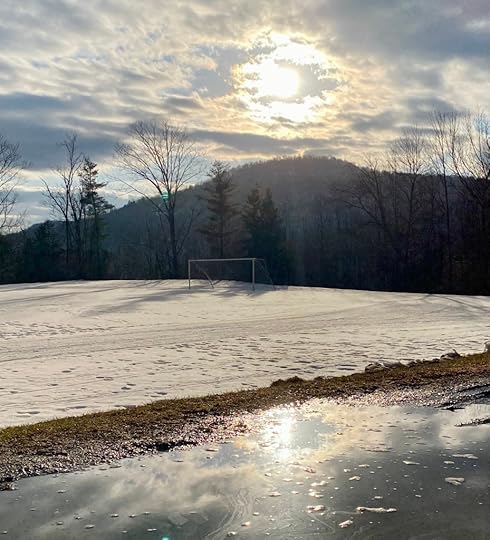 I’m meeting someone, late afternoon, who’s late, so I wait. The February sun has dropped into the horizon and clouds, and the day’s softening snow is tightening up, freezing again. I’m along one of the glacial lakes, a deep cut in the earth created by the planet’s unstoppable movements. It’s an old, old lake, not a newer pond formed by a human dam construction. Across from where I stand is the beach where I swam last fall, evenings and weekends. The water is shallow for a short stretch and then deepens quickly. My youngest had just gone to college. I would swim out as far as I could, then lie on the shore beneath the shaggy cedars, reading and watching the loons dive and reappear.