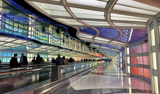 At the Albuquerque airport, the shuttle bus holds just me and the driver who says he’s from the Chicago suburbs. He remarks that I’m shivering and wonders how that can be, as I’ve told him I’m flying back to Vermont. I’m tell him I’m just tired. Perhaps. But the illuminated city and the airport floodlights and mundane directional signs for United and Alaska Air bedazzle my 3 a.m. eyes: there’s so much of the world, so many people and stories braiding and twisting, from the sweet simplicity of a child cradling a beloved doll to an old woman gasping her way to the end of her life.
