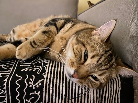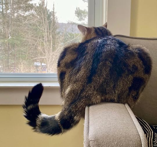 My little cat flicks his tail. A cardinal nestles in the mock orange’s bare branches, crimson feathers in the muted world. I lay my hand on my cat’s silky back, murmuring, “Well, what do you know….”