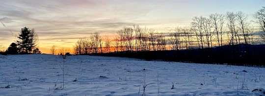In the year’s tail-end days, the neighbors’ children sled down their short hill, hats off, snowsuits unzipped in the warm afternoon. I wander over with a tin of sweets and chat for a bit about sledding conditions, getting the low-down on the mixture of slush and ice. The full moon rises silently, December’s Long Night Moon. Various blues layer the sky, the hues that remind me of the sea in my land-locked geography.