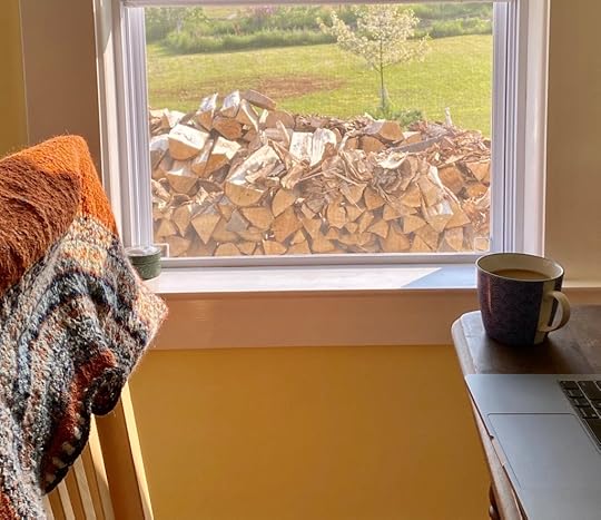 In the darkness, we talk about relationships and marriage, what holds people together, what makes people endure. What makes people split. I toss another chunk of wood on the fire. A glistening half moon hangs over my house. Listening, I turn my hands around and around. So often, my hands are full and busy. Now, the moonlight falls in my open palms.