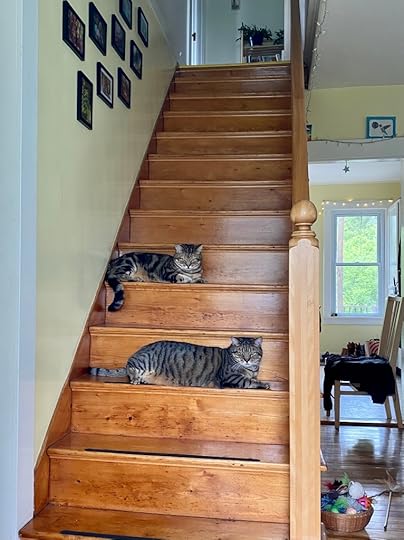 One of my favorite parts of our house is the small glassed-in porch at the bottom of the stairs, just large enough for two small loveseats. In this high school graduation weekend, we’ve spent a lot of time hanging out, talking, talking, the weather alternately switching from cold rain to sparkling sun. The cats sequestered themselves on the stairs while my daughter’s dog lingers around her feet. The dog wants to play. The cats cherish their dignity. The humans hover around this heartfelt drama.