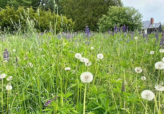 Rain begins spitting midday. I’m on a clearing-my-head walk through the forest, and the songbirds are crazily lovely, singing mightily away, simultaneously solo and in concert, and the flowers — my goodness — the flowers. The forget-me-nots trail me like loving, silent cats.