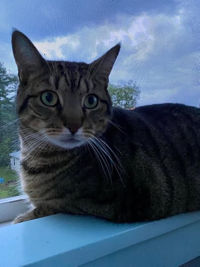 On my deck, the robins’ nest has open-beaked fledglings, tufted and mewling. All day, the parents fly in and out, worms draping from their beaks, feeding their young, this great Herculean parenting endeavor. My cat Acer lies on a kitchen chair, staring through the glass door, mesmerized. The robins, in their robin way, have taken a chance nesting just above my door. Will this pan out? Will the young survive?