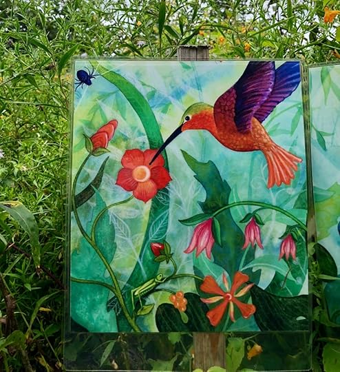 I found this lovely page from a children’s storybook along a path. The local children’s librarian put these on posts on a short path from the library to the lake. On my way into work this morning, I stopped at the lake and opened my lap. I worked intently for an hour, just me and three loons, and some woman who appeared with her two golden retrievers. The water lay flat and smooth, about as perfect as anything gets in this world.