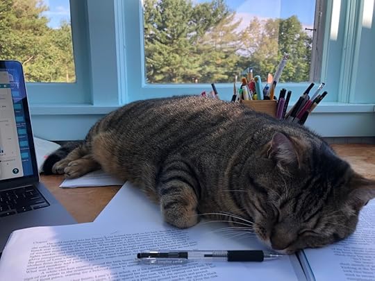 A local radio station asks me to call in for a morning show this week. To cut down on the background birdsongs, I dial from my glassed-in front porch and stand looking out the windows at the hydrangeas which are particularly pink this year. My cat knocks over a glass of water. The water spills around my bare foot just as the announcer patches me on.