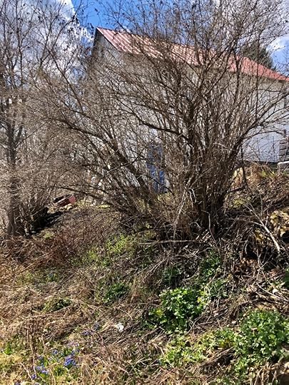 When I walked behind the house, I discovered tiny blue quill — spring flowers I didn’t know. The house was surrounded by those flowers and the promise of profuse lilacs in June.