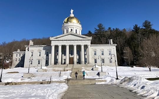 Montpelier, VermontSunday, we bought coffee and pastries in Montpelier (for a change of venue, a change of scene) and ate outside in the cold. There’s a pandemic, after all, and bakeries open on the weekend had closed their indoor seating anyway. None of us complained or even remarked — something I silently noted.