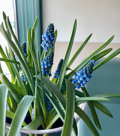 April. My younger daughter brings me blooming hyacinths and bulbs in a glass vase. The doctors talk with me about Donna Tartt’s The Goldfinch, and if the federal funding for Vermont’s interlibrary loan system is jeopardized. I tug at the strings of normalcy coming my way: a nurse’s trip to Des Moines a few springs ago and the city’s tulip beds; a friend’s email about dropping a car at airport for her husband; another friend reads Mary Oliver and sends me recordings; will my cat sitter eat whatever I’ve left in the fridge? Small things that stitch our lives together.