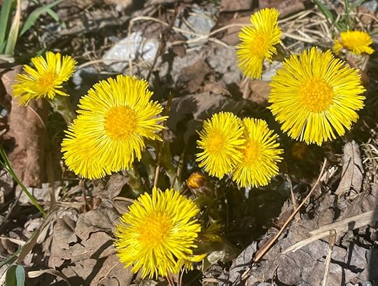 I ante up my $4 copay, and then my brother drives north, over the Winooski River, where I happily point out the first spill I’ve seen of coltsfoot this year.