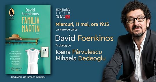 Editura Humanitas Fiction vă invită miercuri, 11 mai, ora 19.15 să urmăriți online dialogul scriitorului francez David Foenkinos cu Ioana Pârvulescu, scriitoare, și Mihaela Dedeoglu, jurnalist cultural. O întânire prilejuită de lansarea romanului Familia Martin – recent apărut în traducerea Simonei Brînzaru în colecția „Raftul Denisei“, colecție coordonată de Denisa Comănescu.