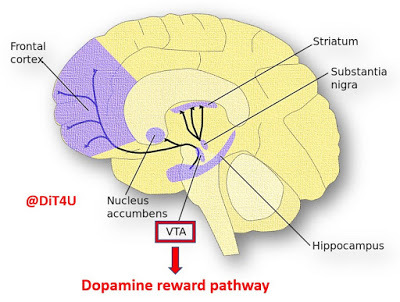 Dopamine is the 'feel good' brain chemical that activates the reward circuitry in the brain as follows: